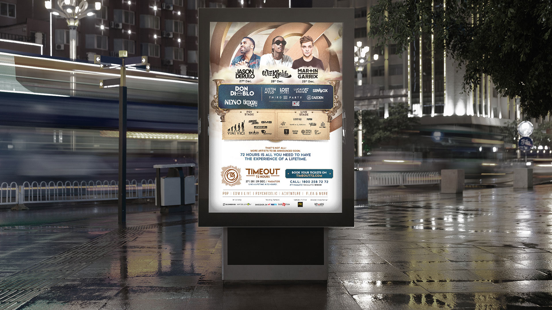 The Time Out emerged as one of India's most significant music festivals. This was the first time for them coming up with a music festival alongwith international artists and a good number of indian artists as well. At the initial level their challenge was to craft a lasting and unforgettable brand identity. The magnitude of the Time Out had to be mammoth and we took this challenge and turned it into an opportunity.